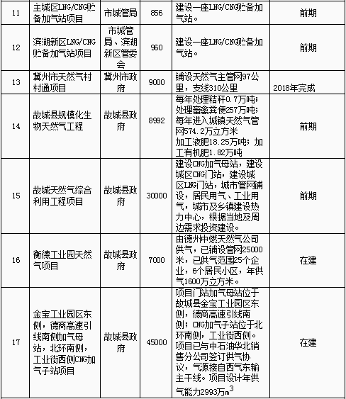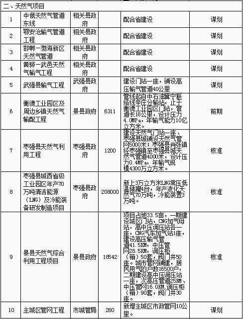 规划建立多元、互补的天然气气源结构,进一步提升供气能力,增强气源保障。积极推进与中石油、中石化和中海油等天然气企业的战略合作,加快干支线管网建设,尽快实现管道天然气“县县通”、“乡乡通”目标。积极推进中俄天然气管道东线、鄂安沧输气管道、邯郸—渤海新区天然气管道、黄骅—武邑输气管道等干线、干线联络线和县域支线工程建设,加快枣强、武强等一批“县县通气”工程建设。