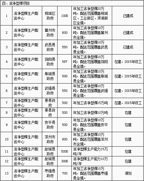 2015年重点在桃城区、工业新区、滨湖新区、冀州市、武邑县、阜城县、饶阳县、武强县、景县(三区一市五县)推广使用洁净型煤45万吨。到2017年全市城乡居民推广使用洁净型煤80万吨,覆盖面达到90%以上,到2020年推广率达到100%