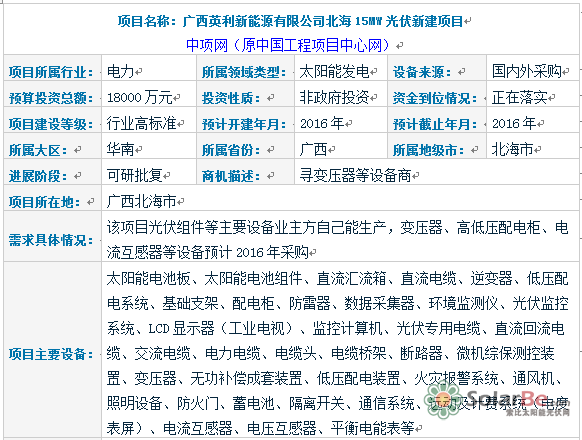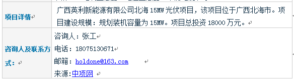 项目名称:广西英利新能源有限公司北海15MW光伏新建项目