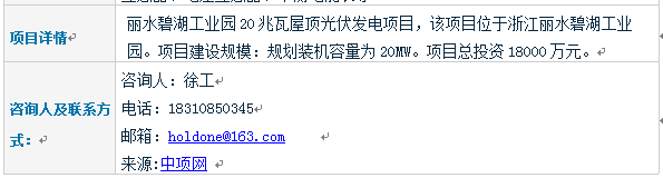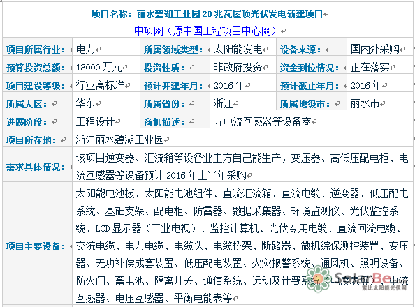 项目名称:丽水碧湖工业园20兆瓦屋顶光伏发电新建项目