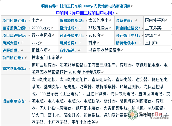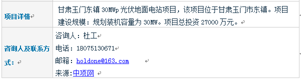项目名称:甘肃玉门东镇30MWp光伏地面电站新建项目