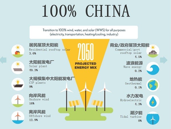 ▼如果按雅各布森的这份研究,到2050年只依靠可再生能源的中国,能源结构就应该是这样的: