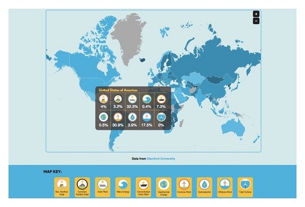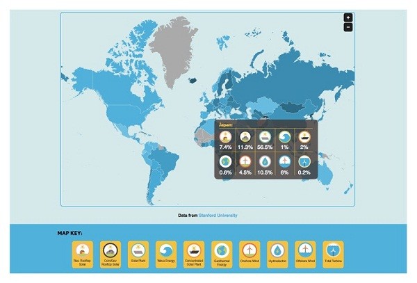 马克·Z·雅各布森(MarkZ.Jacobson)是斯坦福大学大气能源研究项目的主管,他的团队与加州大学的研究人员一起分析了139个国家的能源蓝图:“这些能源计划图表可以表明,无论是在技术层面还是经济层面上,改变不同国家的能源结构是可行的。”