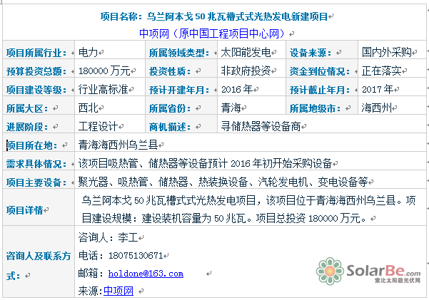 项目名称:乌兰阿本戈50兆瓦槽式式光热发电新建项目