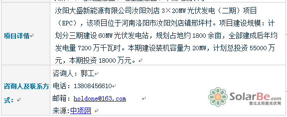 项目名称:汝阳大盛新能源有限公司汝阳刘店3×20MW光伏发电(二期)项目(EPC)