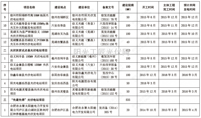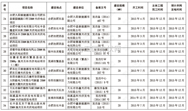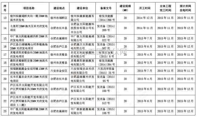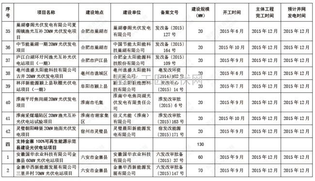 三、根据现场核查情况,将合肥永聚太阳能庐江白湖等42个光伏电站纳入先建先得项目目录,按并网先后滚动配置规模。对积极履行社会责任的项目建设单位,优先安排建设规模。本次“先建先得”项目所需规模在2014年结转和2015年追加规模中配置,不足部分从2016年规模中优先解决。