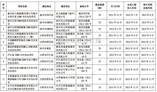 安徽省能源局关于下达2015年地面光伏电站项目建设规模的通知
