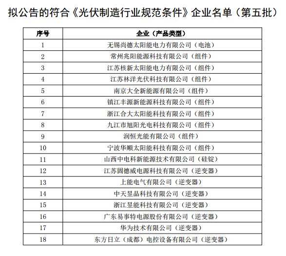 原标题:公示拟公告的符合《光伏制造行业规范条件》企业名单(第五批)