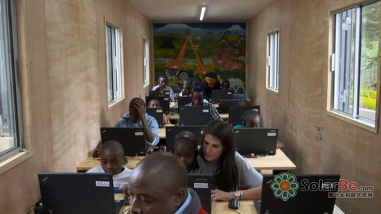 简单来说,该DigiTruck实际上只是一个40英尺(12.2米)的船用集装箱,其中,包括20台完全配置的笔记本电脑,一个LED屏幕,一台打印机和两台路由器,最多可容纳18名学生在同一时间进行学习。DigiTruck顶部的太阳能电池板能够为这些设备供电。