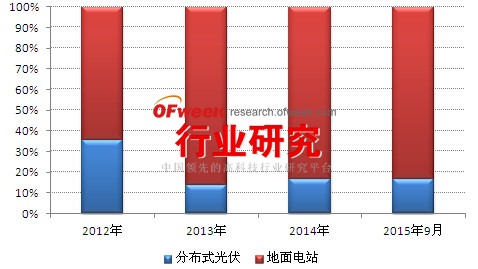 图表2:2012-2015年9月中国分布式光伏占比情况(%)