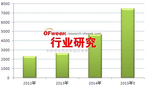图表3:2012-2015年中国分布式光伏发电累计装机容量预测(单位:MW)