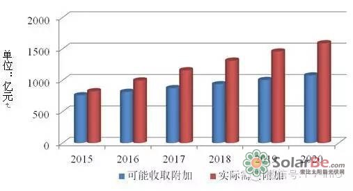 图1:2015~2020年可能受到的补贴和实际需要的补贴对比
