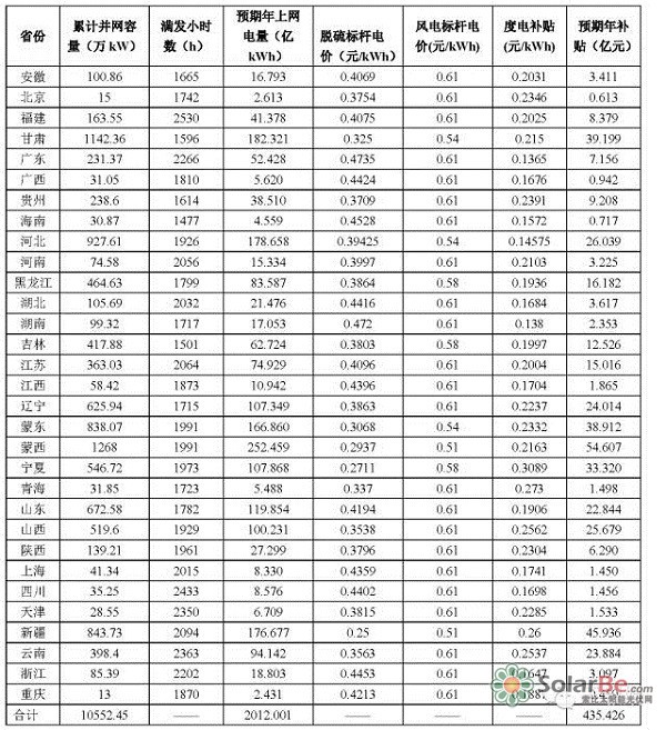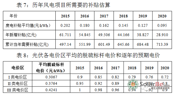 4)由于风电标杆电价是2014年最新调整,2014年底建成的项目,基本上执行原有电价。因此,标杆电价采用了调整前的电价。