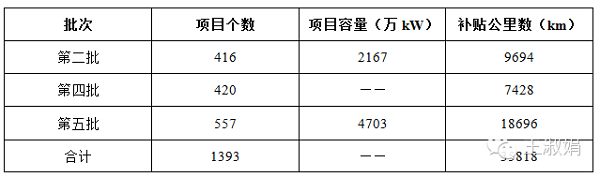 根据国家目前公布的5批可再生能源附加补贴目录,接网工程的补贴公里数如下表。