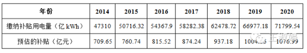 实际收到的可再生能源补贴资金会低于上述金额,如2014年预估为709亿元,但实际收到的不足500亿元。