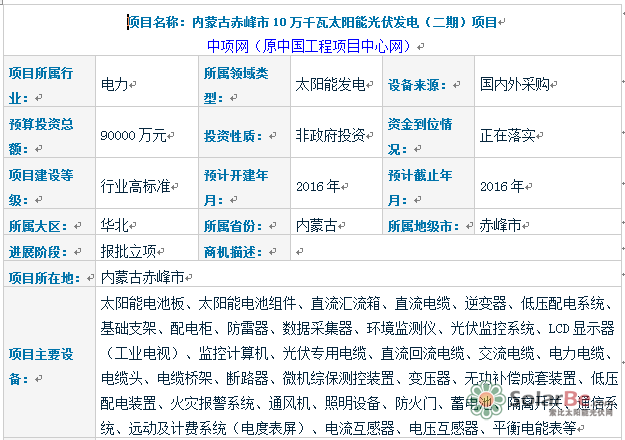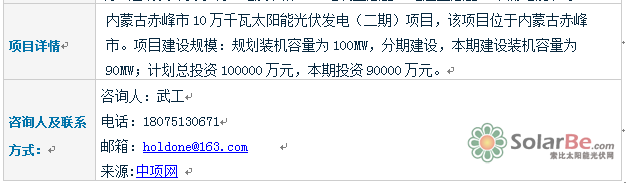 项目名称:内蒙古赤峰市10万千瓦太阳能光伏发电(二期)项目