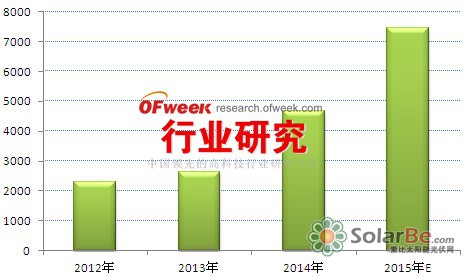 图表3:2012-2015年中国分布式光伏发电累计装机容量预测(单位:MW)