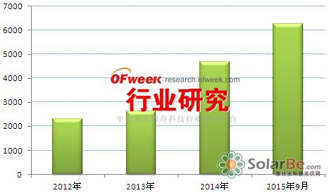 图表1:2012-2015年9月中国分布式光伏装机情况(MW)