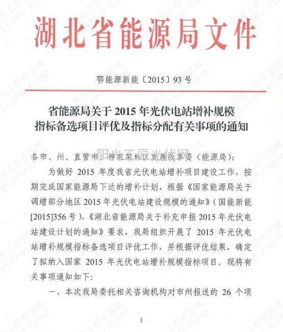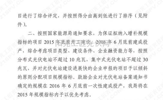 关于2015年光伏电站增补规模指标备选项目评优及指标分配有关事项的通知