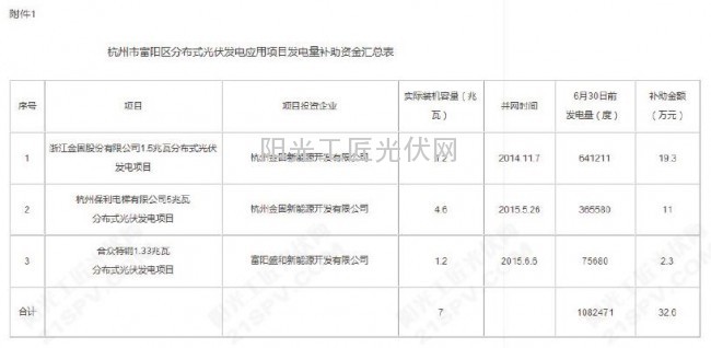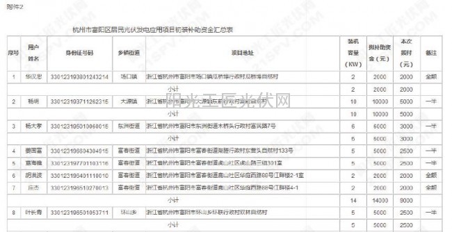 2.杭州市富阳区居民住宅光伏发电应用项目初装补助资金汇总表(查看富阳区经济和信息化局)