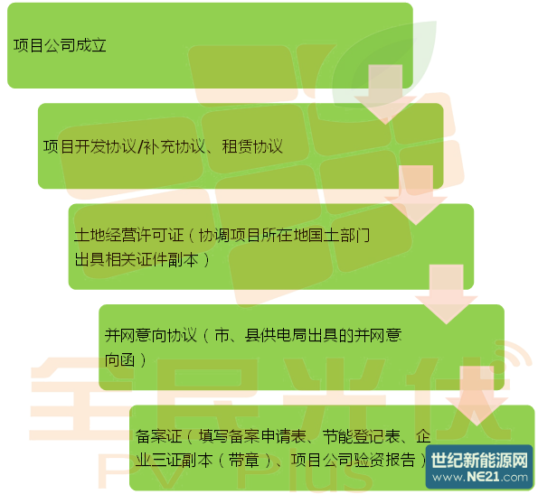 既然光伏用地政策明朗了,那你还在等什么呢?全民君手把手教您开发地面分布式光伏电站的时间到了。具体流程如下: