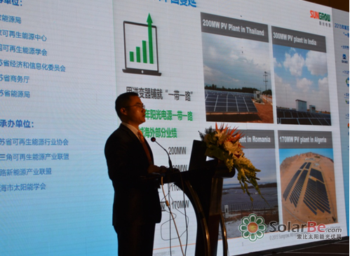 在论坛上,阳光电源市场总监张彦虎博士发表了《借“一带一路”东风 加速逆变器走出国门》的演讲。张博士表示:得益于国家“一带一路”战略,全球发展中国家可再生能源的需求及中国高品质的光伏产品,中国光伏在“一带一路”沿线国家市场取得重大突破。作为中国第一大逆变器专业制造商,阳光电源海外市场更是捷报频传,在亚洲、非洲、欧洲等光伏市场上屡获大单,比如阿尔及利亚中技贾内特的170MW光伏项目,中巴经济走廊上的巴基斯坦900MW光伏项目等。