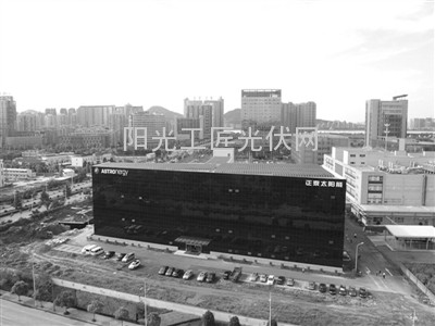 是的,这是两幢会发电的大楼,它们坐落在浙江正泰太阳能科技有限公司的厂区里,不仅屋顶铺设了太阳能光伏板,就连外立面幕墙都使用了太阳能发电组件。11000平方米的大楼立面外墙和部分建筑屋顶上铺设了约9000块电池组件,总容量达330千瓦。