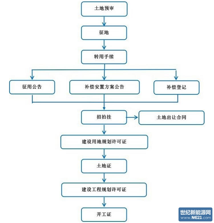 预审(包括选址)→农转用和征用→两公告→登记→县政府同意补偿方案批复→供地