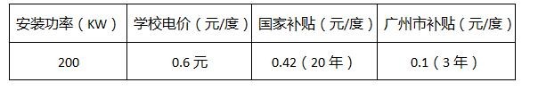 2、资金来源:倡议以校友募捐的方式筹得太阳能光伏发电站的建设资金;拟筹集资金为150万,预装机容量为200KW。预期200KW光伏电站项目每年将为助学基金带来约20万元的收益。