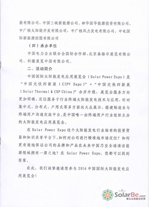 在中国电力企业联合会的权威支持下,国家能源局、国家电网、南方电网、华能、大唐、华电、国电、国电投、三峡、神华、中广核、中电建、中能建、浙江省能源集团、华北电力大学等政府主管单位、电力公司、电网公司、科研学术机构为Solar Power Expo提供了强有力的支持。