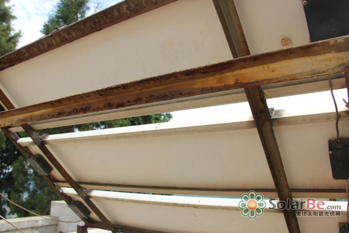 图:在户外近20年后,支架已见锈迹斑斑,但基于杜邦™ 特能® PVF薄膜的背板外观无明显变化。经检测,黄度b*值变化仅为1.6-1.8,证明其优异的耐候性。