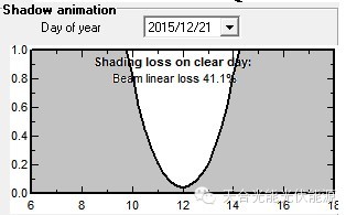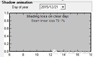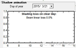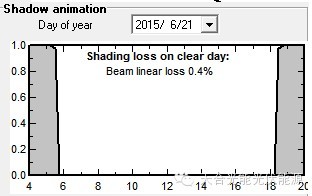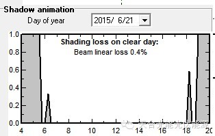 经过模拟发现,前后排光伏阵列之间区域,在春秋季内几乎是没有被光伏组件遮挡的,在夏季早晚时间内会有遮挡,遮挡时间出现在早上刚日出后和傍晚太阳即将落入地平线下之前的这两段时间内,遮挡造成的光照损失很小。而从各个分区的不同高度月辐射量与水平面月辐射量对比,当4月份—8月份,几乎没有遮挡情况出现的月份,也总是存在最低5%的差距,这是因为PVsyst内部建模,模拟的过程中考虑了IAM(incidenceanglemodifier)factoronglobar球面入射角修正系数这一项高于4%的损失。