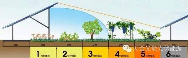 国内光伏阳光房、类似阳光房的光伏农业大棚肩高常设计为3米左右,国外一些农光互补电站中光伏组件高度也在3米高左右,两者相比,国内光伏农业大棚内常用于育苗、高大花卉苗木等种植以及对光需求少、需要匍匐支架的经济作物种植,国外农光互补电站设计除植物需求外,也考虑了满足机械化操作需要。
