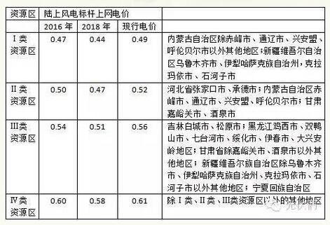 注:1.2016年、2018年等年份1月1日以后核准的陆上风电项目分别执行2016、2018年的上网标杆电价,2年核准期内未开工建设的项目不得执行该核准期对应的标杆电价。2016年前核准的陆上风电项目但于2017年底前仍未开工建设的,执行2016年上网标杆电价。