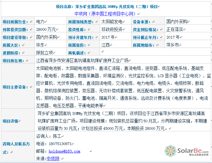 项目名称:萍乡矿业集团高坑30MWp光伏发电(二期)项目