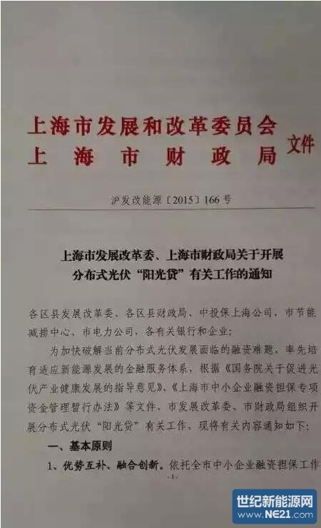 【重磅】上海发改委、财政局印发《开展分布式光伏“阳光贷”》的通知