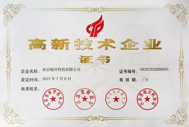 索比光伏网讯:南京畅阳科技于2015年7月6日被授予“国家高新技术企业”称号。该证书是由江苏省科学技术厅,江苏省财政厅,江苏省国家税务局,江苏省地方税务局共同审定颁发的证书。