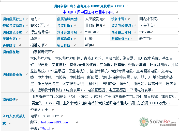 项目名称:山东省寿光市100MW光伏项目(EPC)