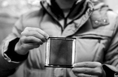 昨日,记者在武汉理工材料复合新技术国家重点实验室看到,该新型太阳能电池与普通有色半透明玻璃无异,但将其放在台灯的光照下方,该电池能迅速产出电能,驱动风扇旋转。与普通太阳能电池不同的是,该新型电池是经“印刷术”生产出来的。研究员只需把一种调好的特殊“墨水”倒至各种基板上,太阳能电池就能像印刷报纸一样,一块块制作出来。