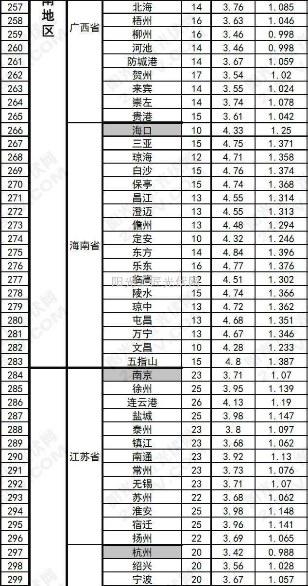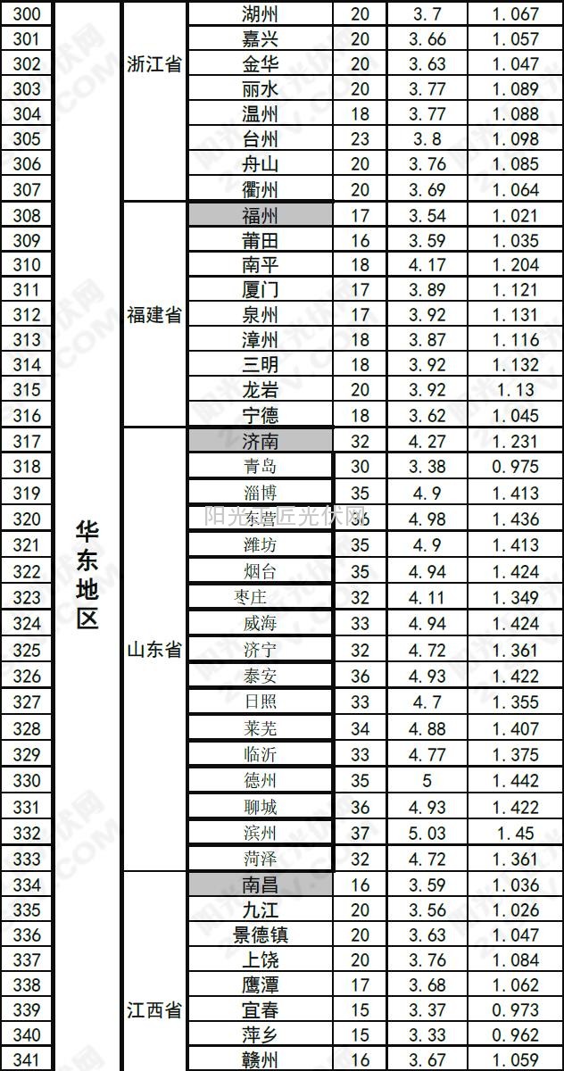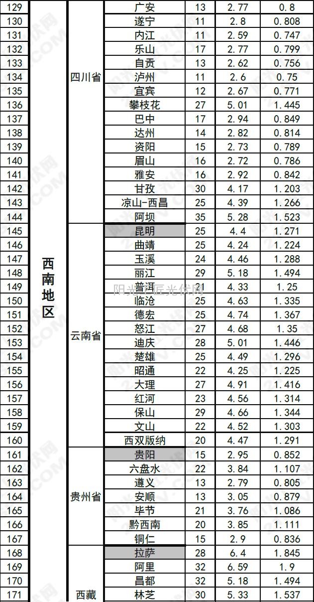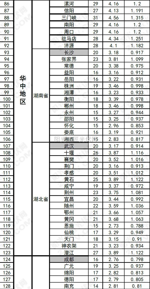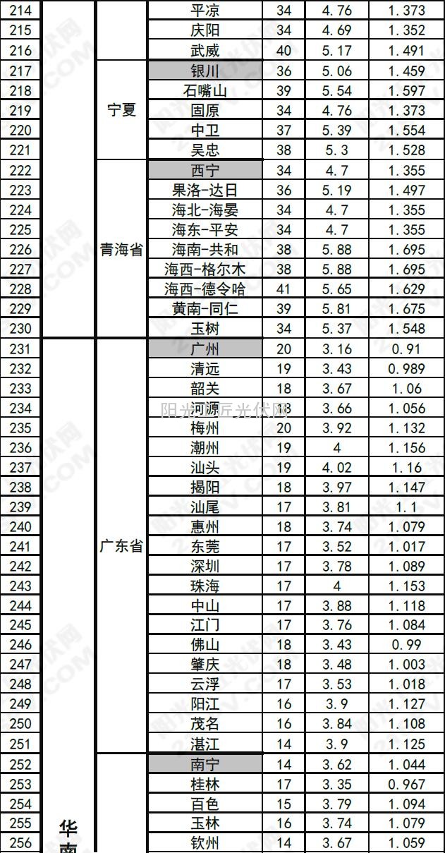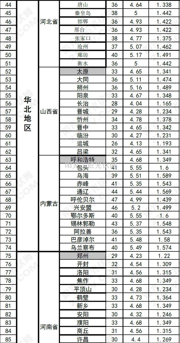 >>中国部分省市光伏电站最佳安装倾角及发电量速查表