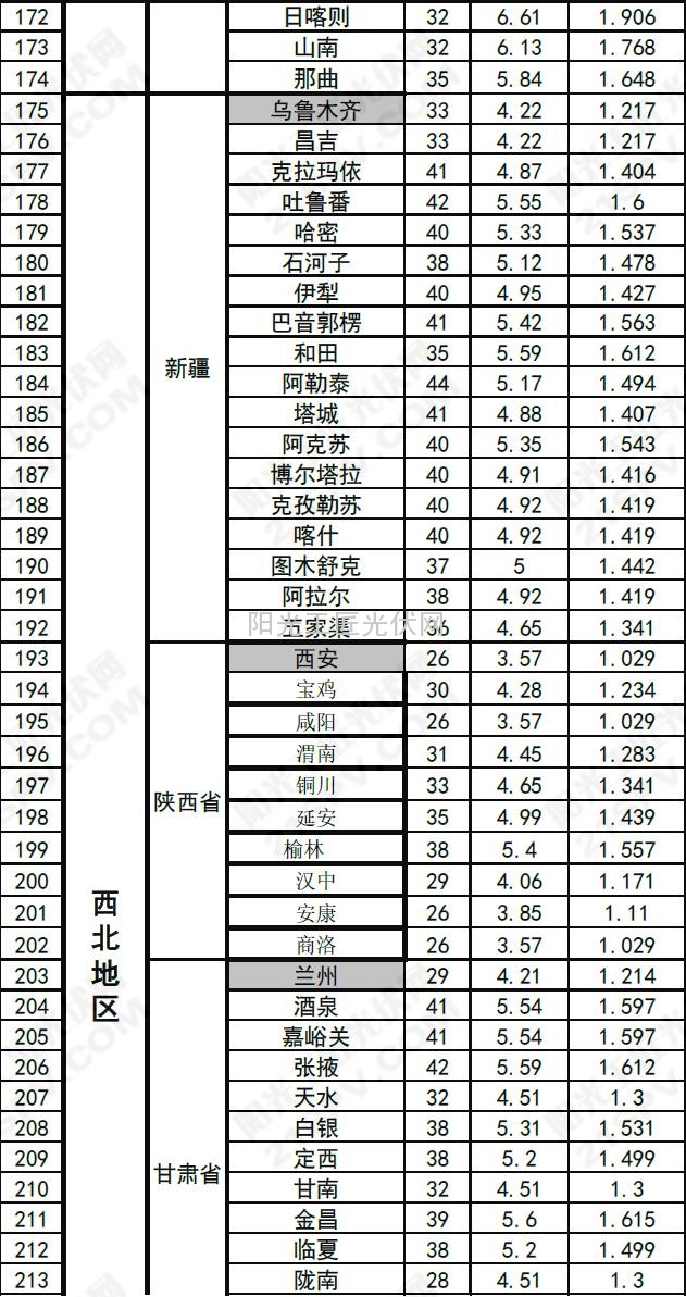 说明:数据来源于网络,由光伏人士整理而来,作者未知。数据来源于NASA官方数据,数据的精度有待考证,不过从笔者多年的经验来看,数据还是有很大参考价值的!