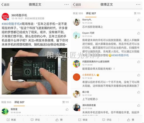 360奇酷手机官微发起“未来5年的手机”讨论