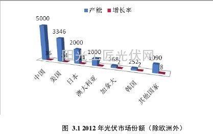 光伏组件产能为37GW占全球的51%,产能为22GW,占全球的54%。纵观2012年全年的产业整合,导致比2011年组件制造产能下降25%,由49GW降至37GW,下降了25%。然而,无论国内还是全球供需关系来看,供过于求的状况难以在短时间内改变。