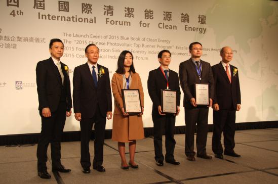索比光伏网讯:2015年度光伏“领跑者”卓越企业颁奖典礼于12月16日在澳门“第四届国际清洁能源论坛”期间成功举办,颁奖嘉宾包括中国经济社会理事会副主席,全国政协常委徐振寰、中国科学院院士何祚庥、中央人民政府驻澳门特别行政区联络办公室秘书长王新东、国家电投中央研究院副院长李晓民、国际清洁能源论坛(澳门)常务副理事长袁国林、澳门基金会行政委员会副主席张裕、澳门中华总商会副理事长黄国胜、澳门特别行政区政府能源业发展办公室副主任卢深昌、国际清洁能源论坛(澳门)理事长,全国政协委员苏树辉,来自国际能源领域的300多位代表共同出席了颁奖典礼。