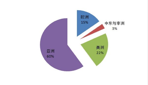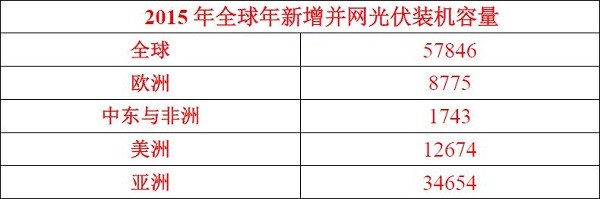 图2.2.2.2015年亚洲年新增并网光伏装机容量将占全球60%