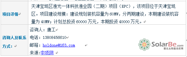 项目名称:天津宝坻区渔光一体科技渔业园(二期)项目(EPC)