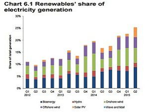 索比光伏网讯:日前,英国能源和气候变化部发布2015年二季度可再生能源统计报告,指出2季度发电中可再生能源占比25.3%,同比增长8.6%。