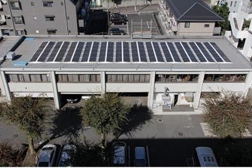 市政府屋顶设置的50kW太阳能电池板(摄影:羽村市)