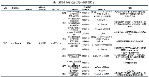 本文以浙江省各个地区(如下表所示)为例,具体分析国内典型地区的分布式光伏补贴政策。
