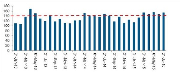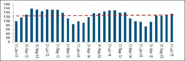 上半年国内光伏弃光18亿度,主要集中在甘肃、新疆地区,其中,甘肃省弃光电量11.4亿千瓦时,弃光率28%;新疆(含兵团)弃光电量5.41亿千瓦时,弃光率19%。甘肃地区由于当地电网建设滞后、内部消纳比例低等原因,光伏、风电等可再生能源一直存在相对严重的限电问题,从木联能“i光伏”平台发布的甘肃地区光伏电站平均发电小时数来看,2014年以来一直维持在100小时左右,预计弃光率在20%左右。